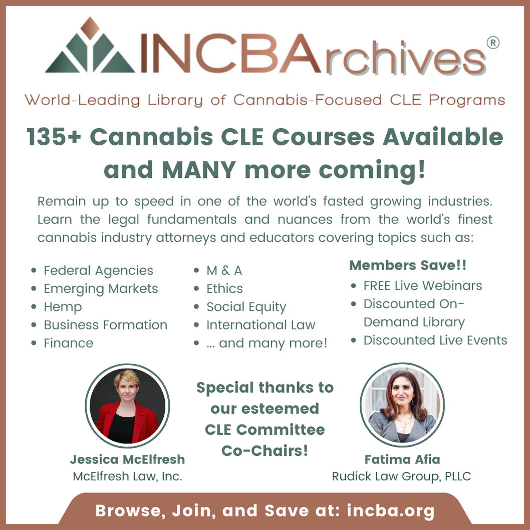 INCBA is the leading provider of Cannabis-focused Continuing Legal Education (CLE) in the World! We offer some of our on-demand content for free (no CLE available). Click each graphic to watch free or click the button below to view our complete catalogue of Cannabis Continuing Legal Education.